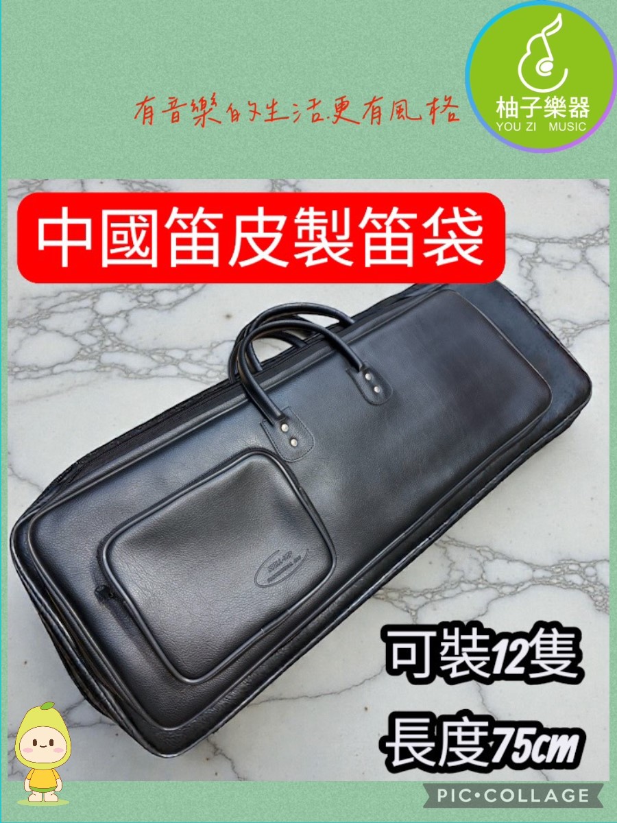 中國笛袋 皮製 75cm 加厚防撞 12隻裝 獨立配件袋 |柚子樂器|