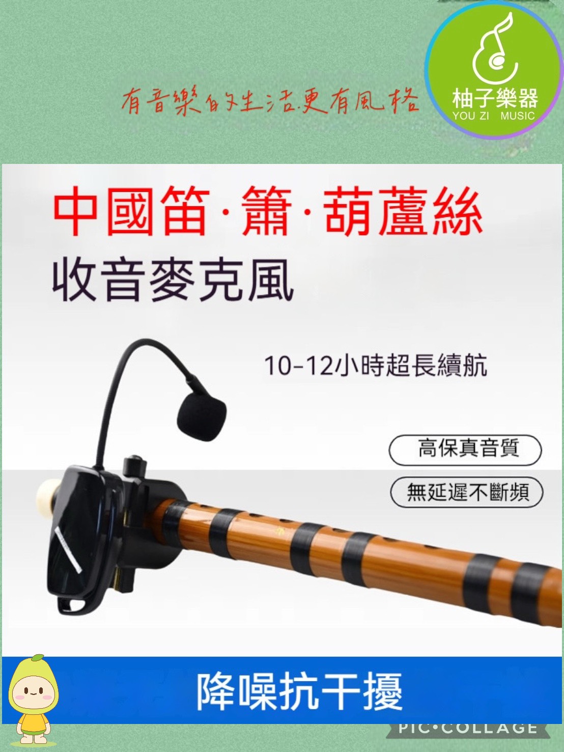 中國笛/簫/葫蘆絲收音麥克風|12小時超長續航|專業降噪不掉頻|柚子樂器