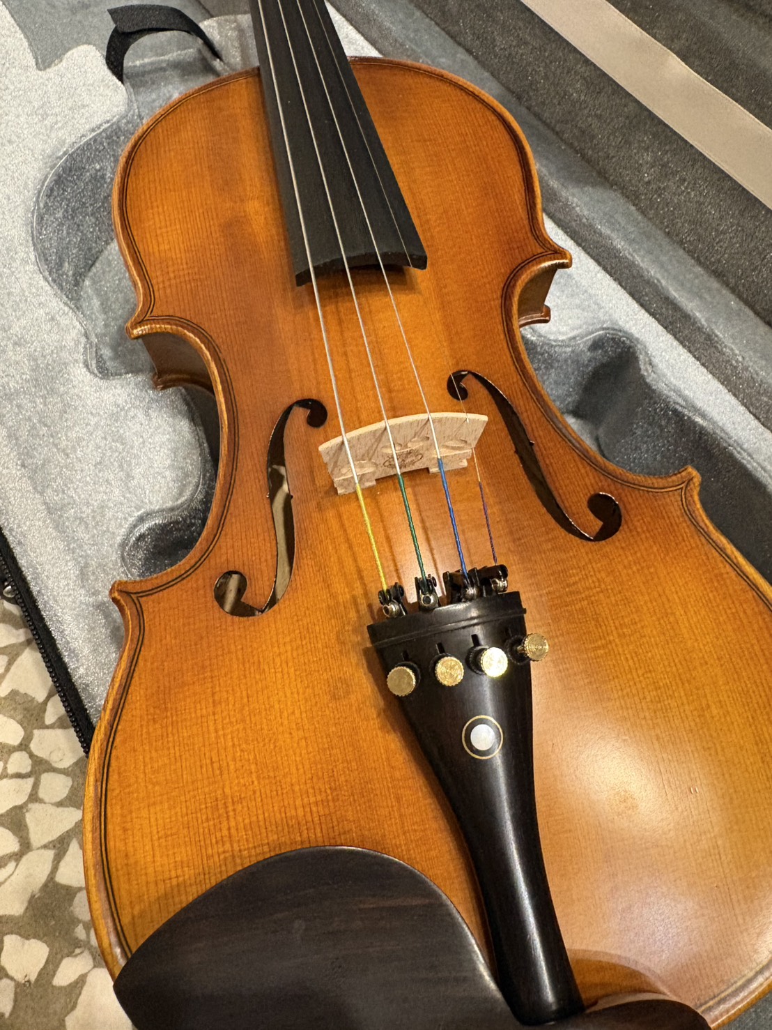 這款中階亮面小提琴適合想從入門升級、追求更穩定音色與手感的學習者:搭配 AUBERT DELUXE 法國琴橋,發聲更集中、反應更靈敏;加上 4 微調尾絃板讓調音更直覺省力,日常練習、檢定與團練都很合適。另附硬盒方便攜帶與收納防護,想挑一把耐練、耐看又好照顧的中階琴,來柚子樂器試試最安心🎻🧡✨