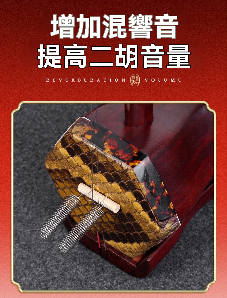 🔊 增響/混音效果: 另一種使用方式(或特定安裝位置),能利用金屬彈簧特性增加二胡混響音,讓聲音更響亮、穿透力更強。