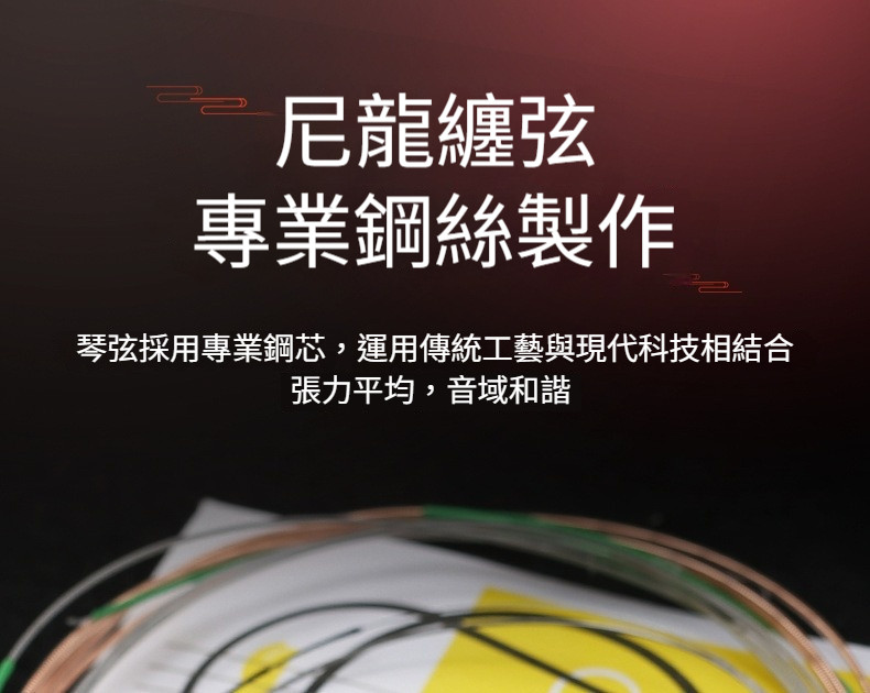 採用專業鋼絲核心搭配尼龍纏弦工法,品質穩定,廣受學校與演奏者使用。