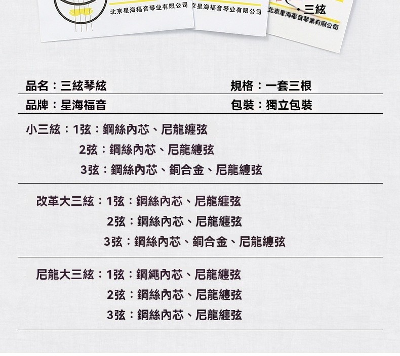 依需求提供小二弦或大二弦整套配置,更換方便、不易配錯。