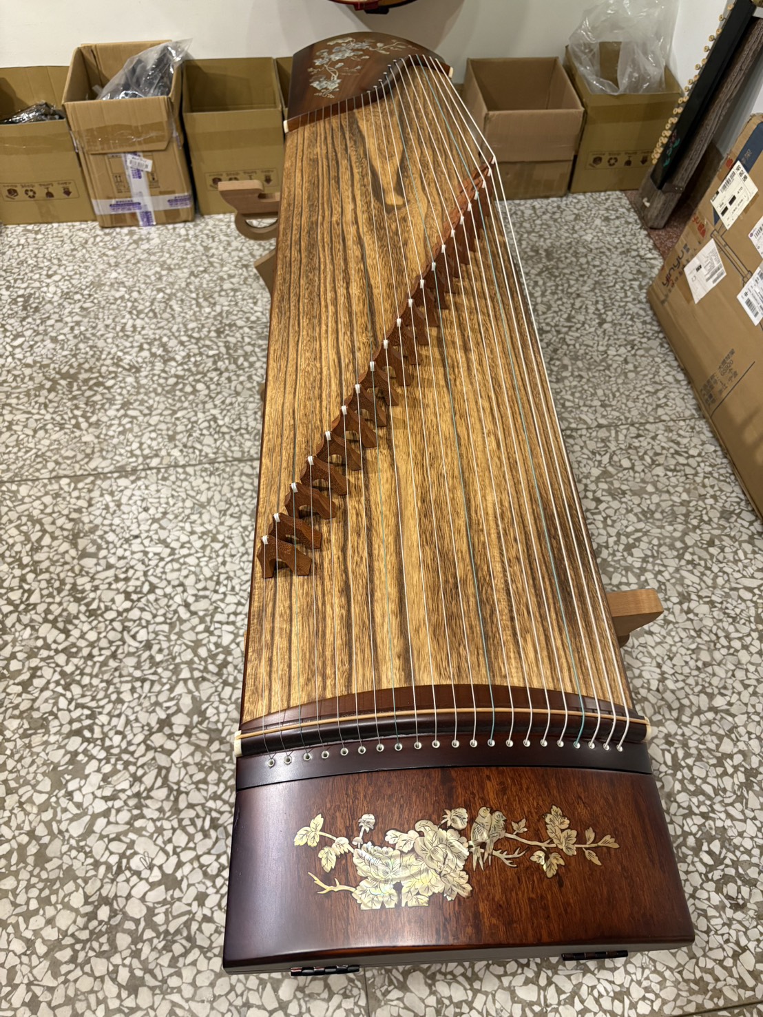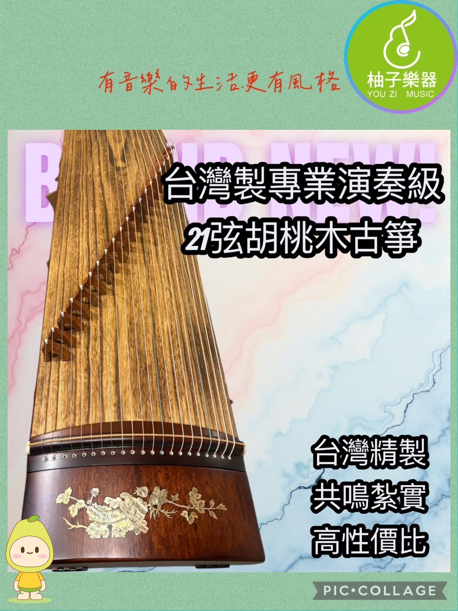 台灣製 胡桃木古箏|21弦標準演奏琴/高CP值/貝殼鑲嵌|附加厚外出袋 |柚子樂器|