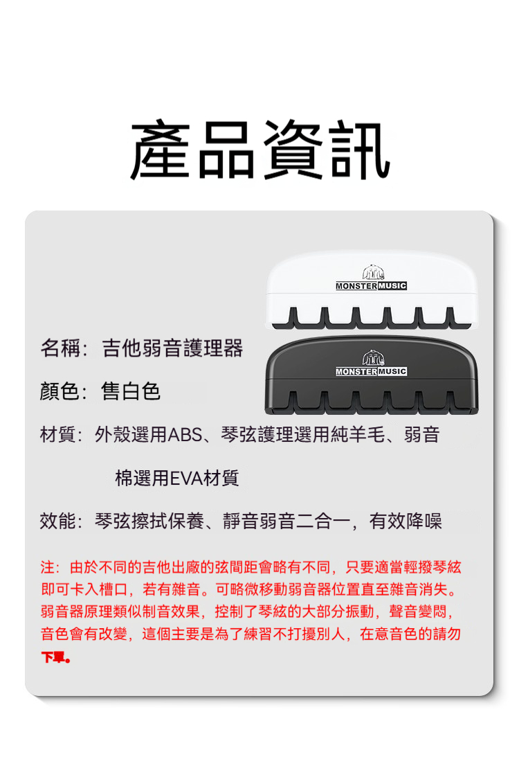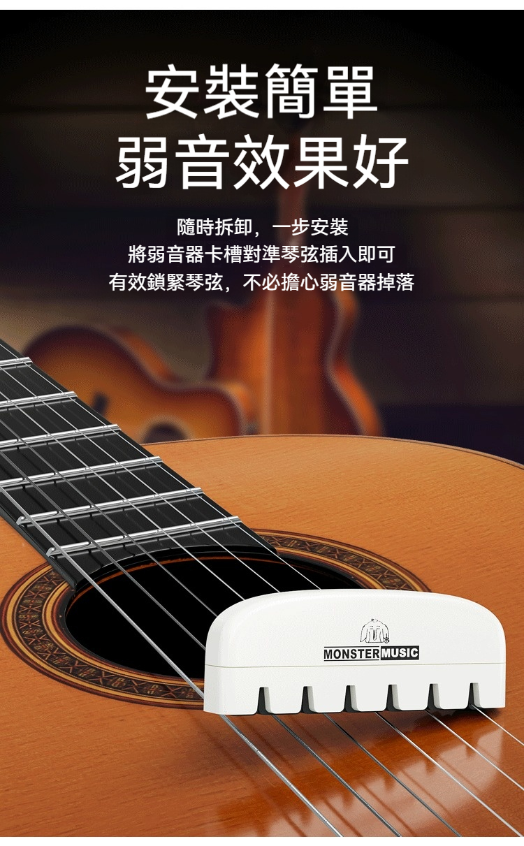 🎶 有音樂的生活更有風格! 這款Monster Music吉他弱音護理器是您居家練琴的最佳夥伴。