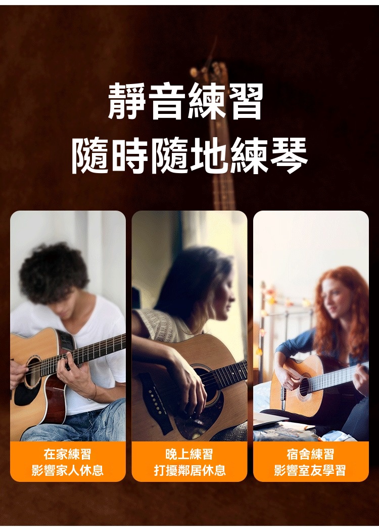 🔇 夜間靜音練習: 物理阻尼設計能有效降低吉他音量,特別適合深夜或居家練習,不再擔心打擾家人或鄰居。