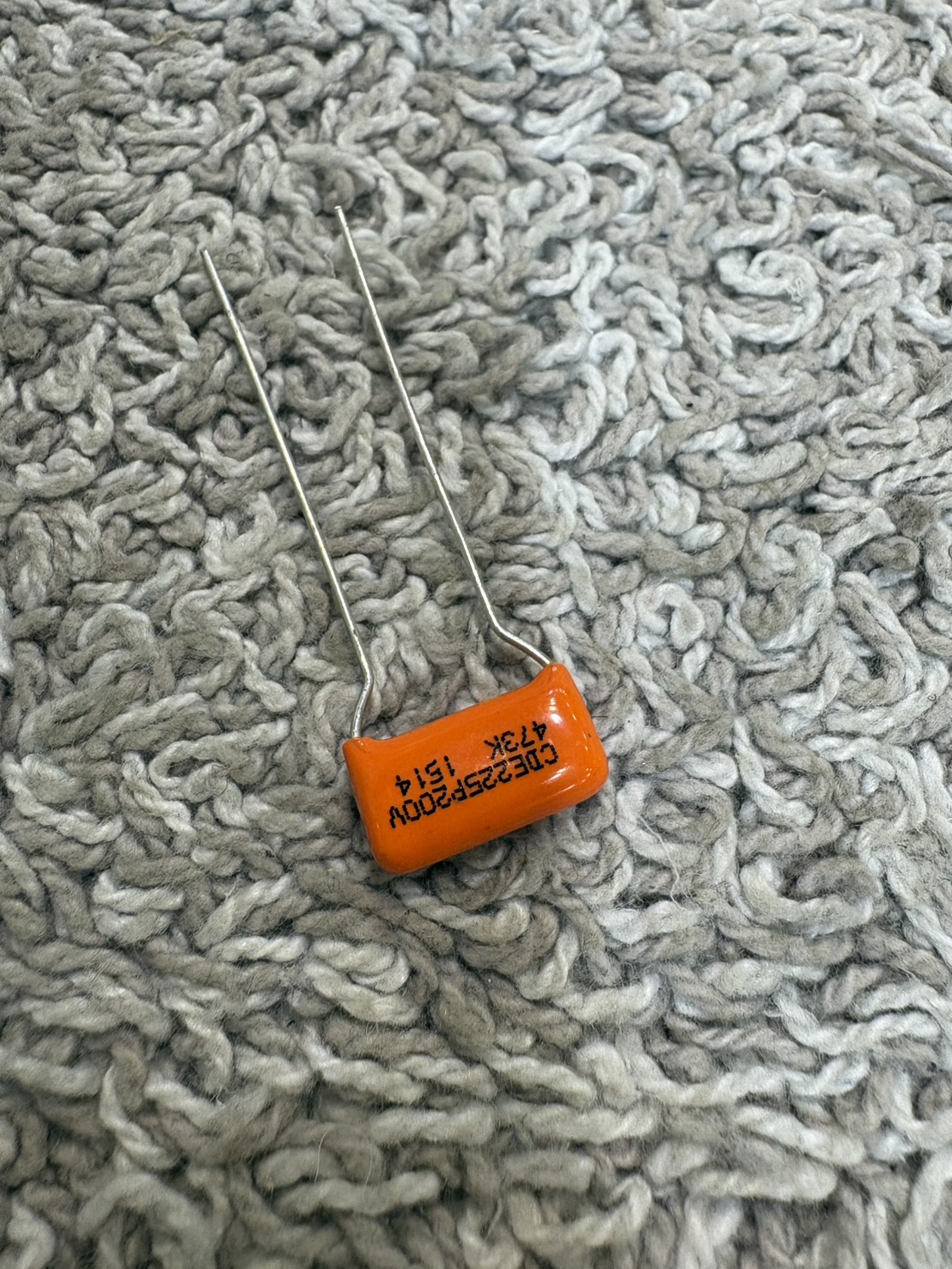 💡 尺寸與數值:電容數值越大,Tone 鈕關小時聲音越暗;電壓值不影響音色,僅影響體積大小。