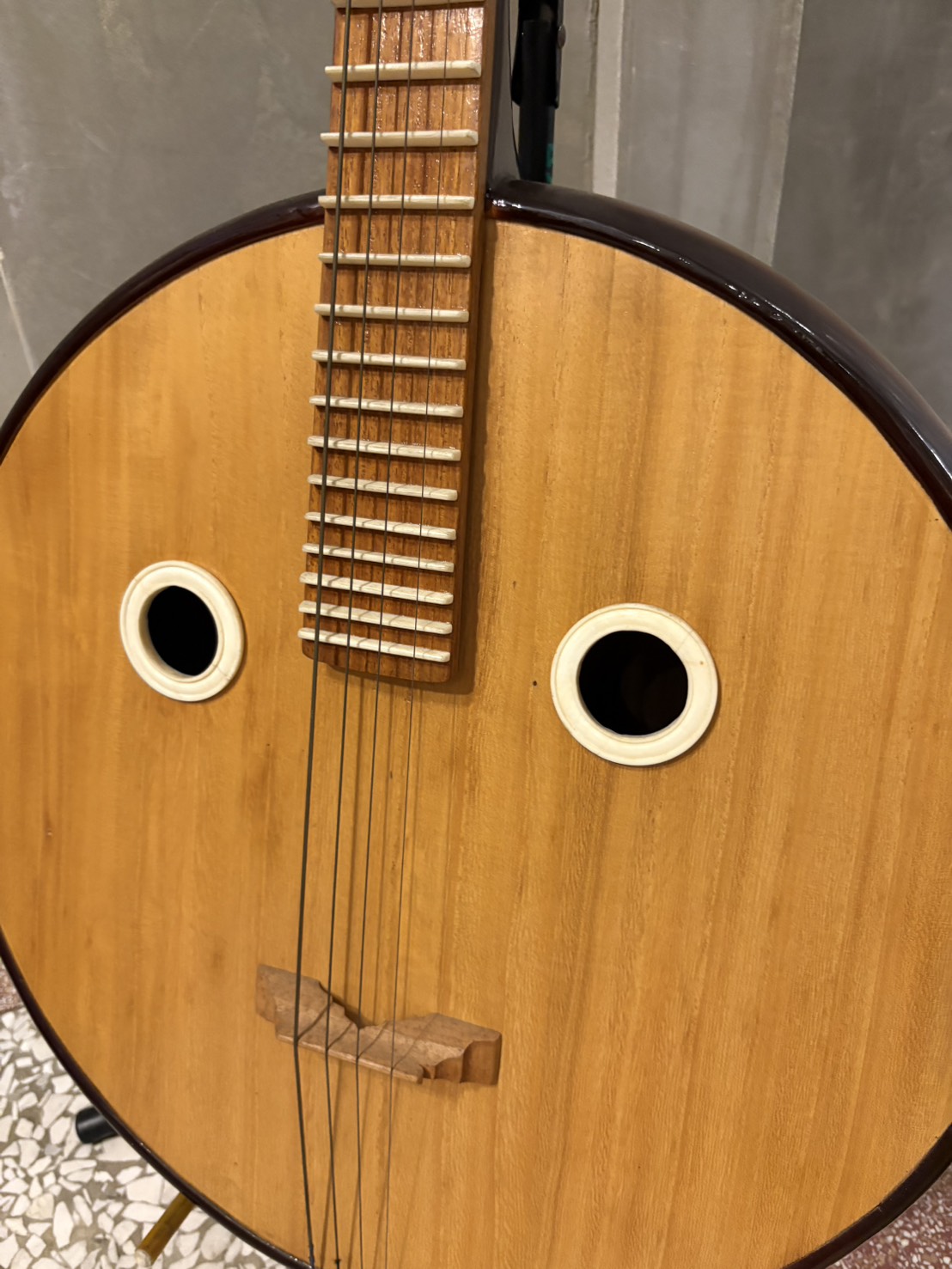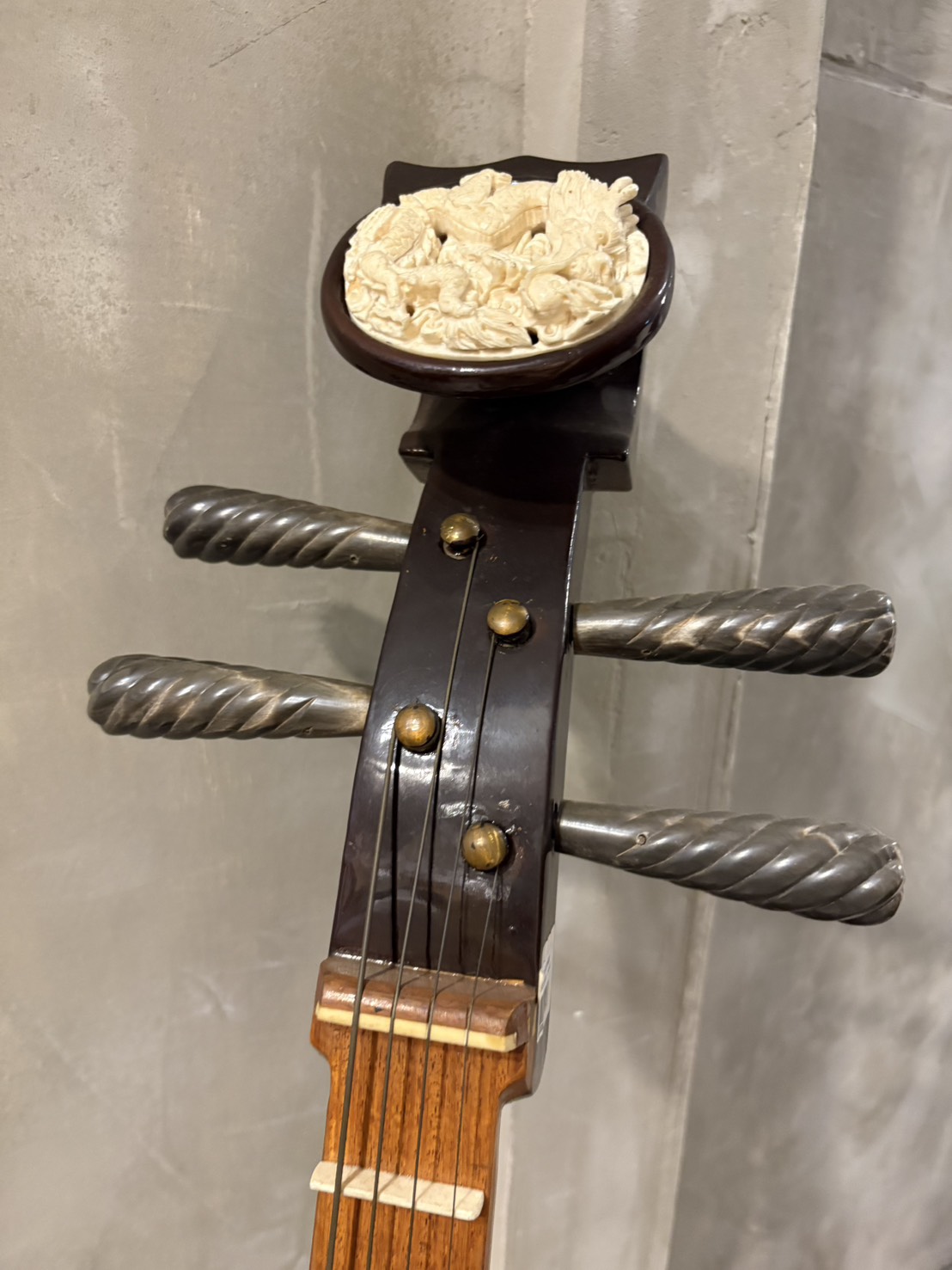 這把 北京骨花大阮 完美結合了北方製作工藝的渾厚音色,以及極具特色的**「骨花」裝飾**,
