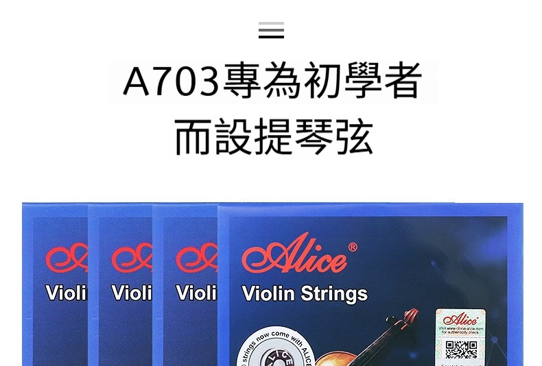 Alice A703 小提琴弦(初學練習・耐用不易斷・音色穩定)|柚子樂器