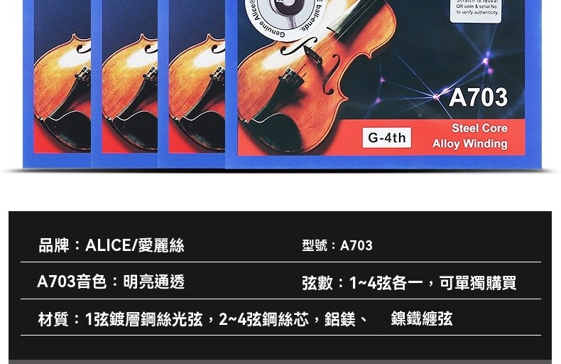 【Alice A703 小提琴弦】(初學練習・耐用不易斷・音色穩定)