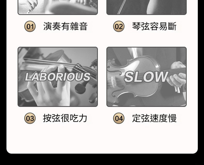 提供不同尺寸與配置,適合各年齡層學生的小提琴使用。