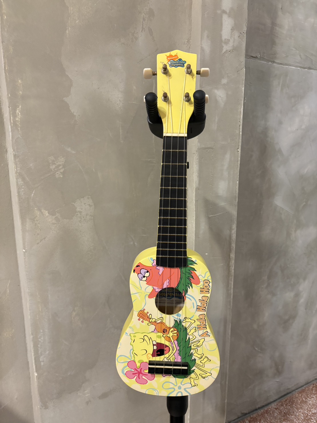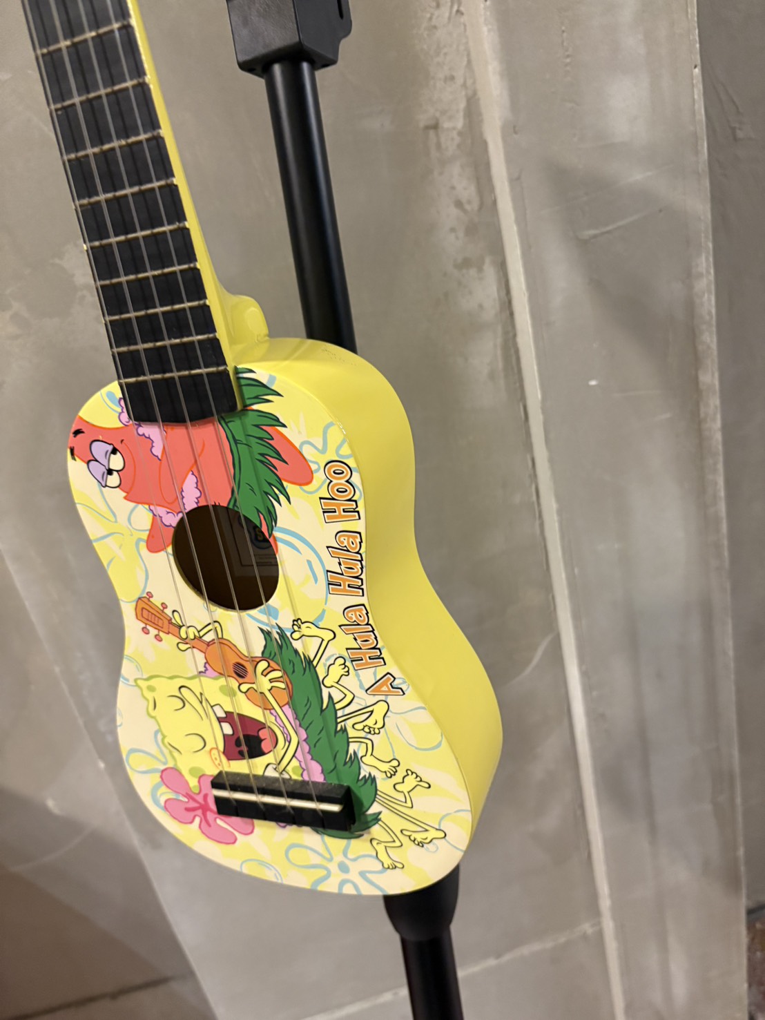 🍍 經典圖案設計: 琴身印有海綿寶寶和朋友們在比奇堡的經典圖案,色彩鮮豔,增添演奏樂趣。
