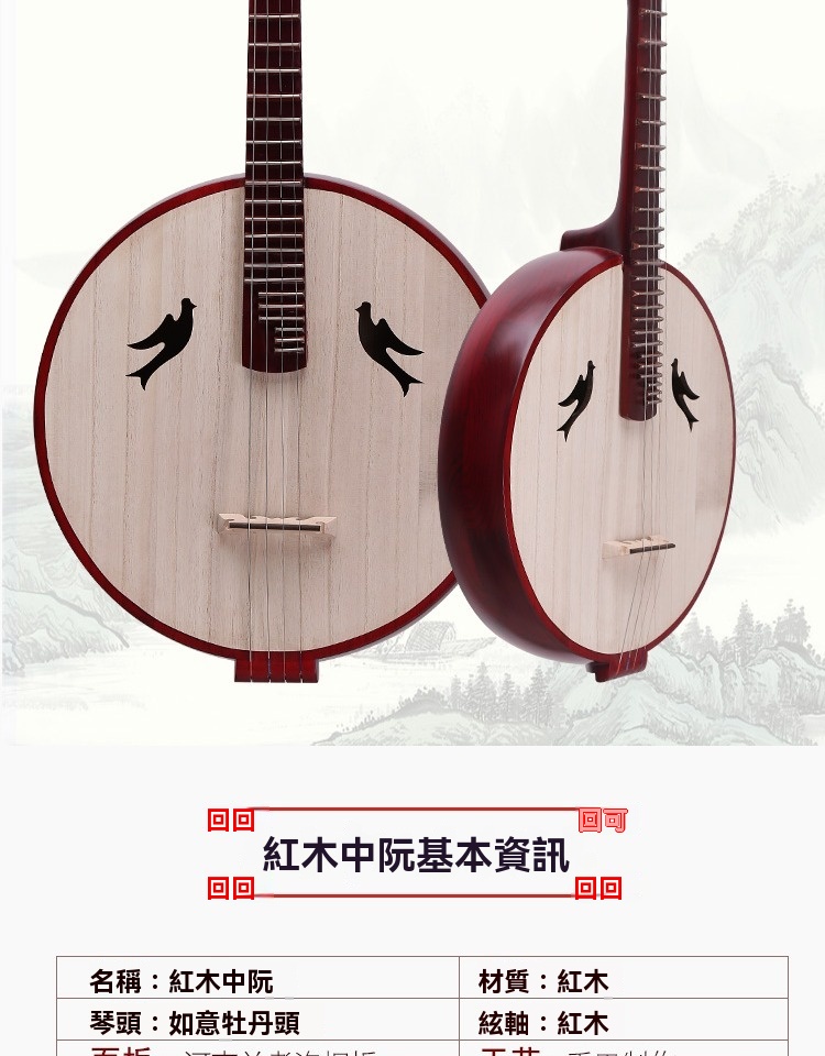 📌【紅木 滿月中阮 初中階|小鳥音孔設計|傳統國樂彈撥樂器】