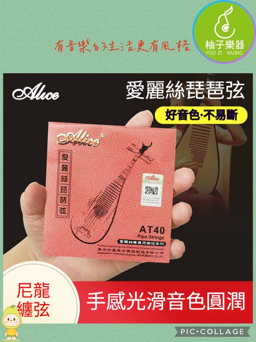 Alice AT40 愛麗絲琵琶弦(尼龍纏弦・音色圓潤・手感順滑)|柚子樂器