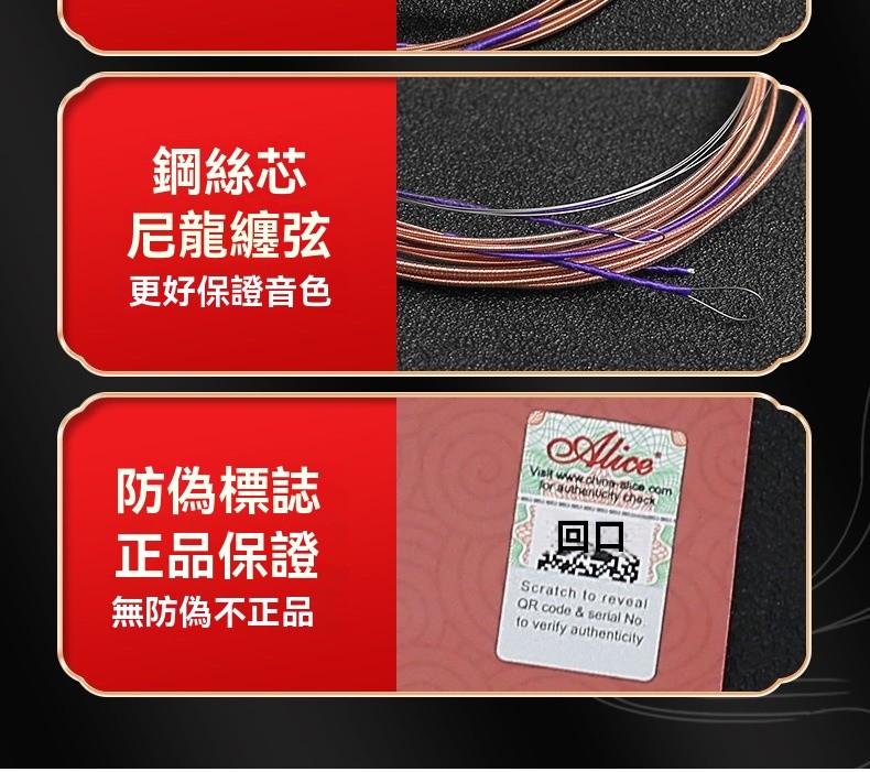 Alice 為國樂弦線常見品牌,品質穩定、規格清楚,廣受教學單位採用。