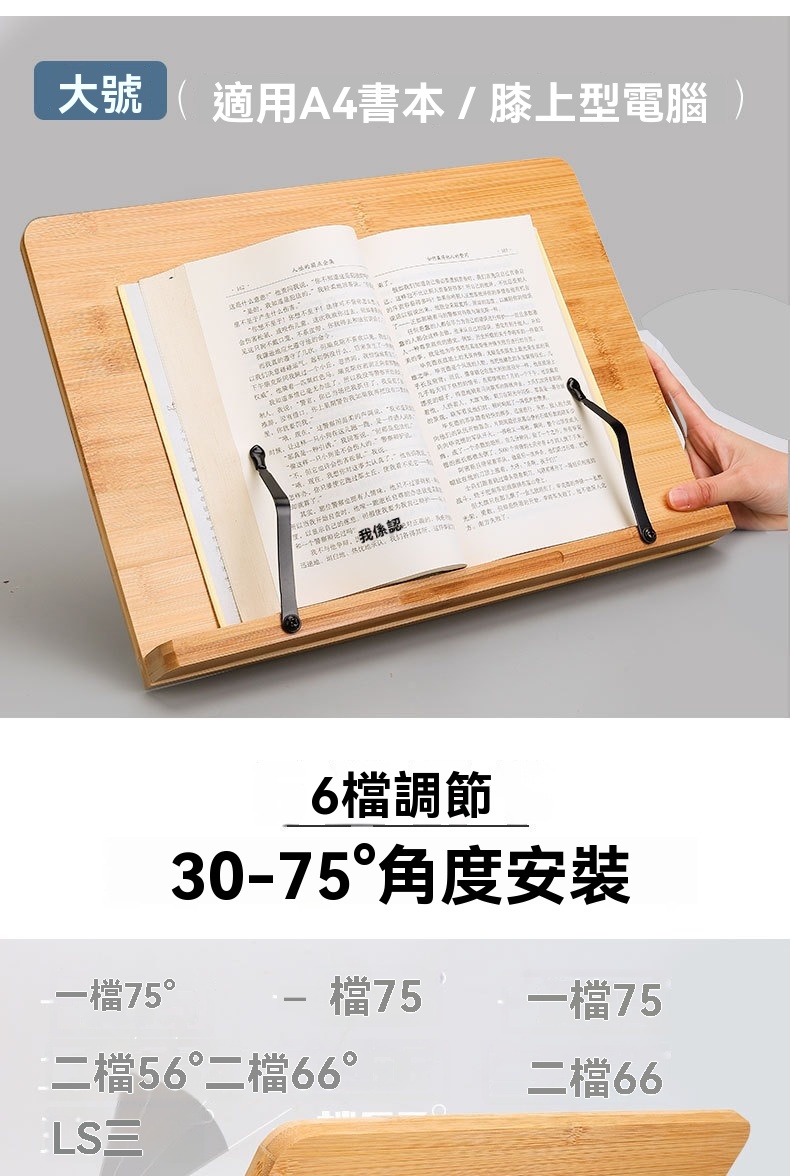竹製6段可調 閱讀架 書架/譜架/平板/筆電支架 (A4適用)