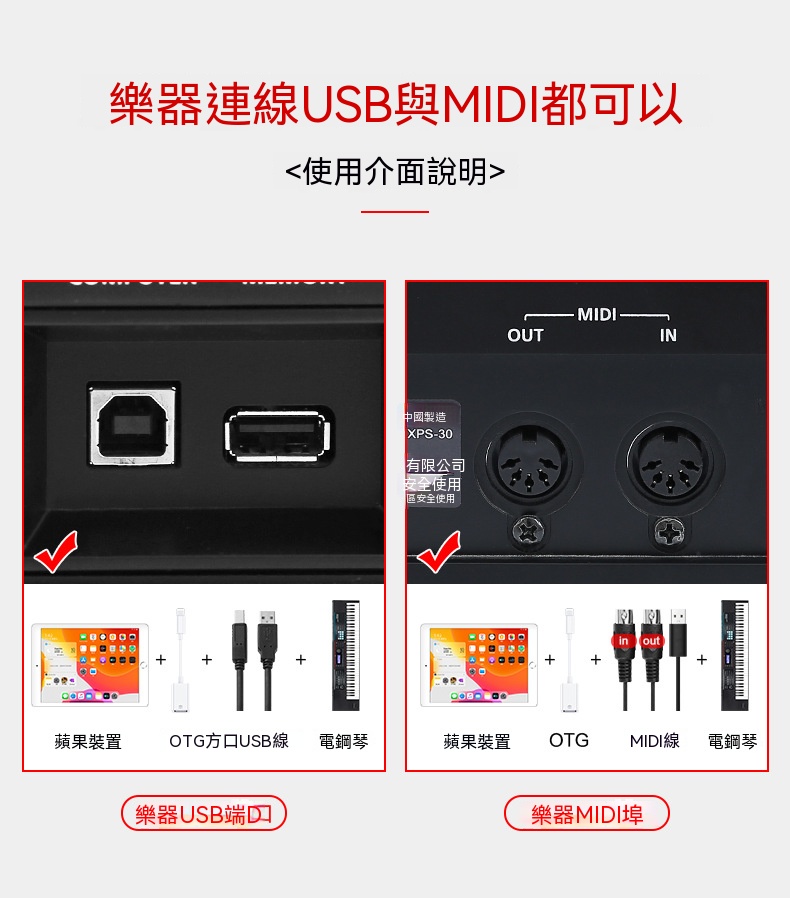 用途: 樂器數據傳輸、充電、文件存取、周邊擴充