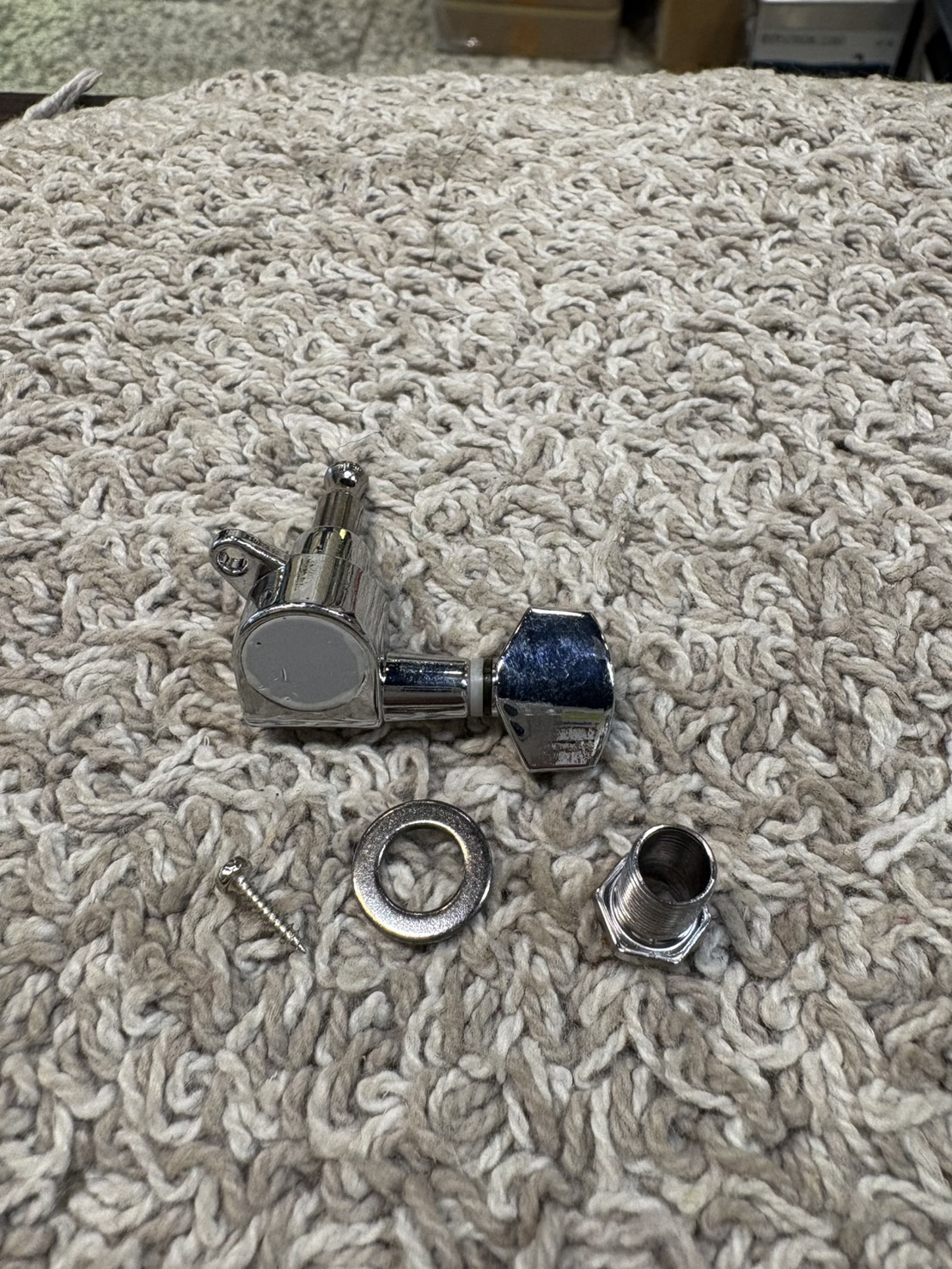 🔩 內容物:弦鈕 x6、墊片 x6、螺帽 x6、固定螺絲 x6