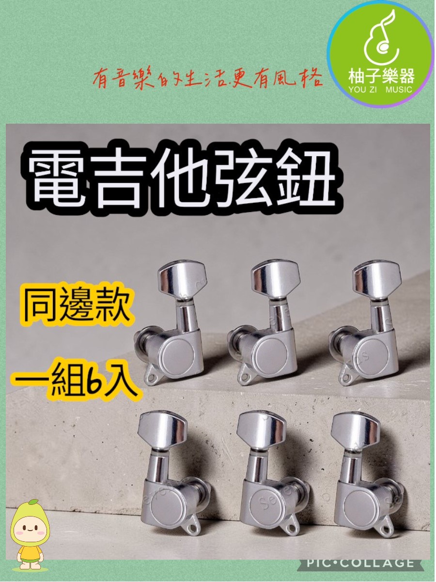 電吉他專用弦鈕 6入組 同邊配置 45度螺絲孔 全封閉金屬材質 替換升級首選 零件配件|柚子樂器