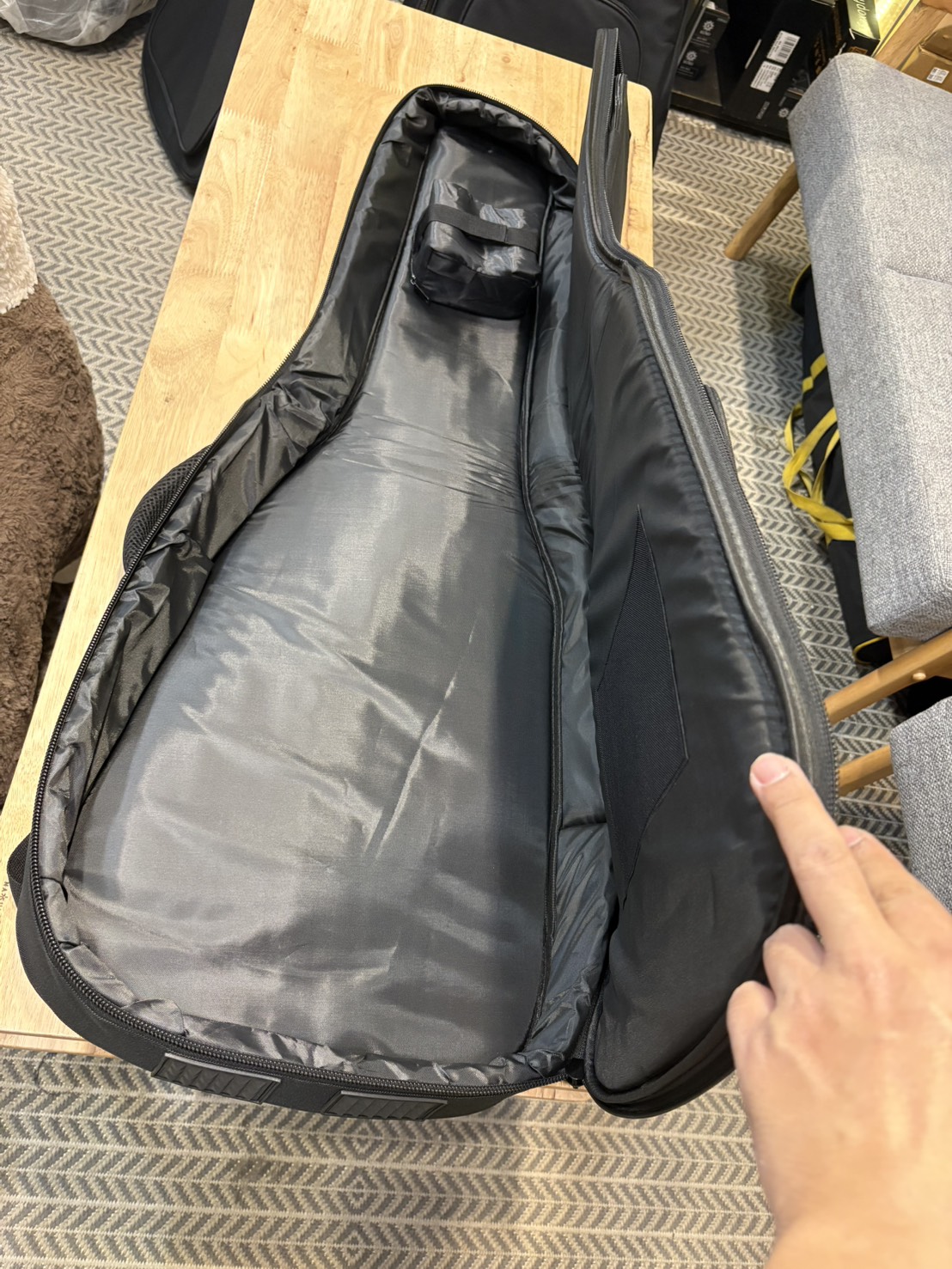 上方小型袋:方便放置調音器、彈片等小型配件。