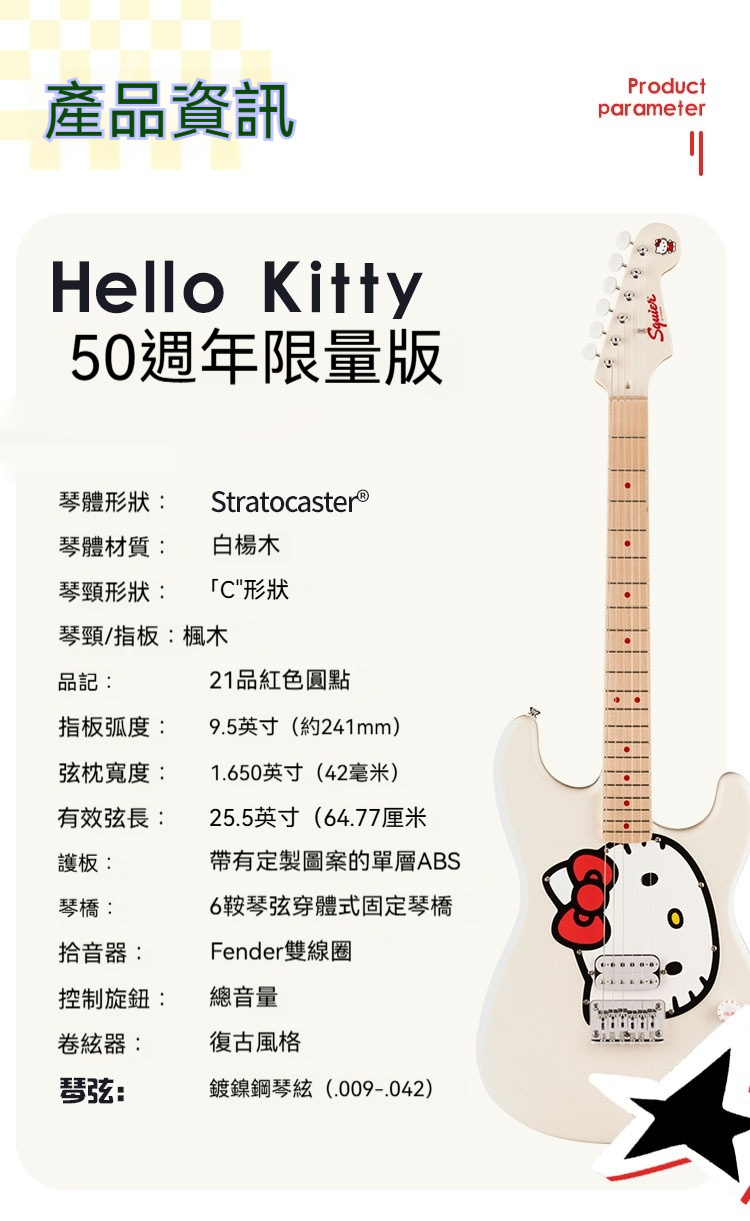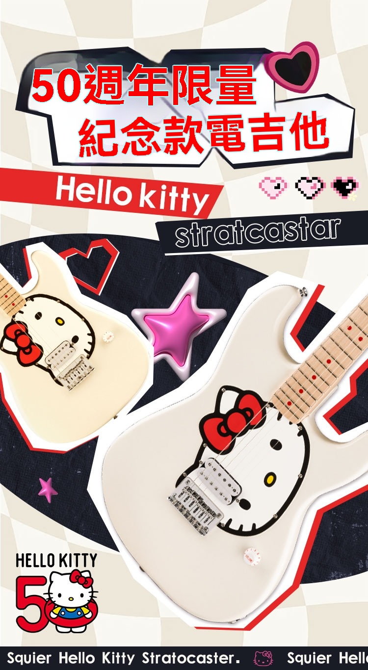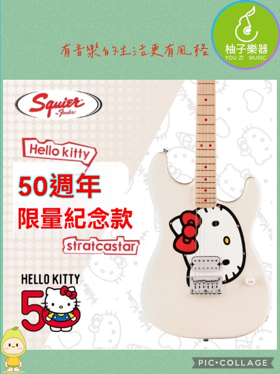【預購商品】電吉他 Squier Hello kitty 限量版50週年珍藏版 為了她,我要學電吉他!! |柚子樂器|