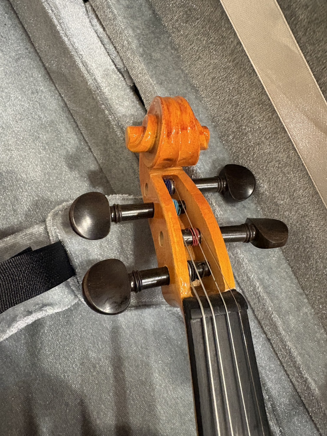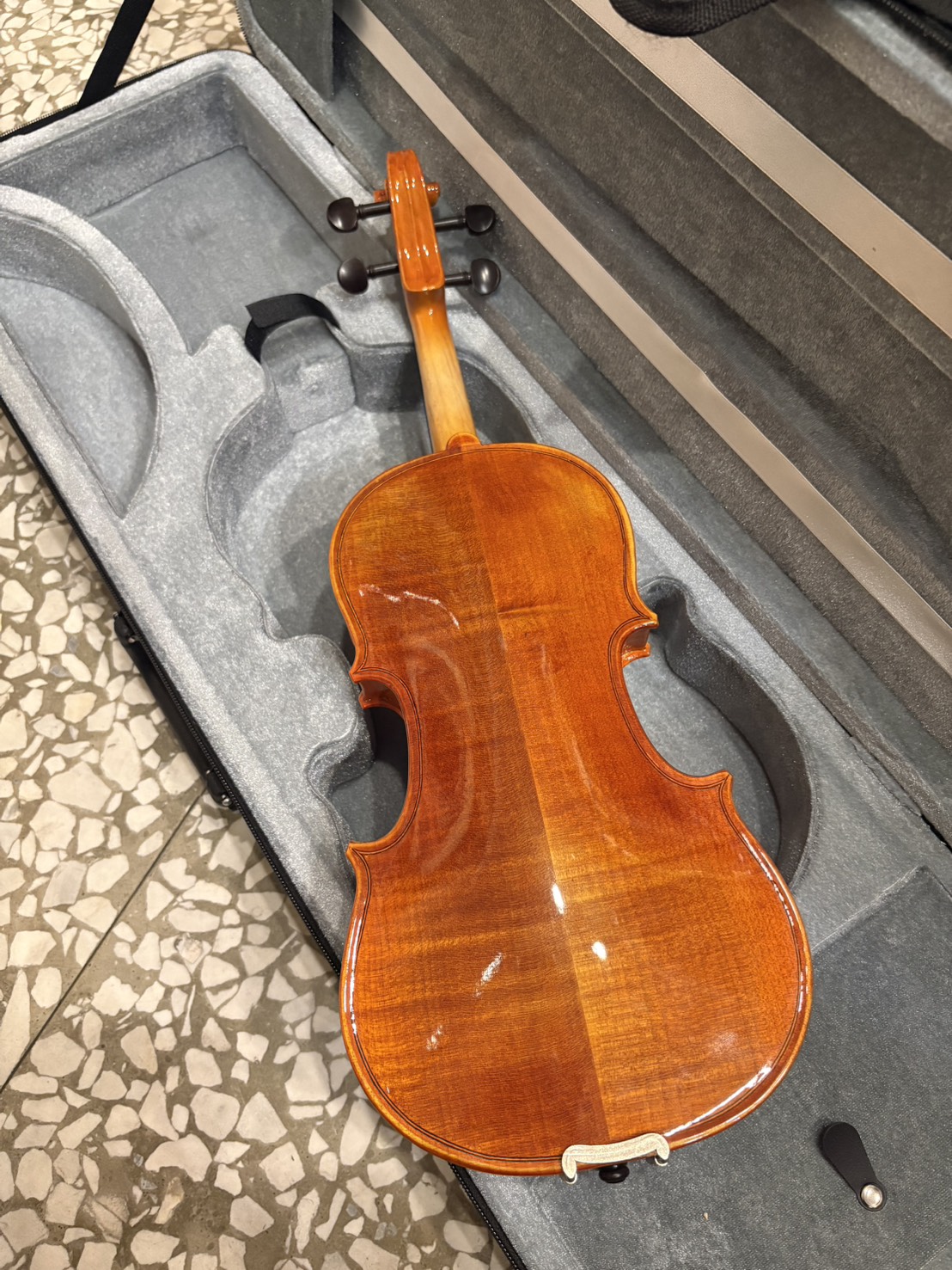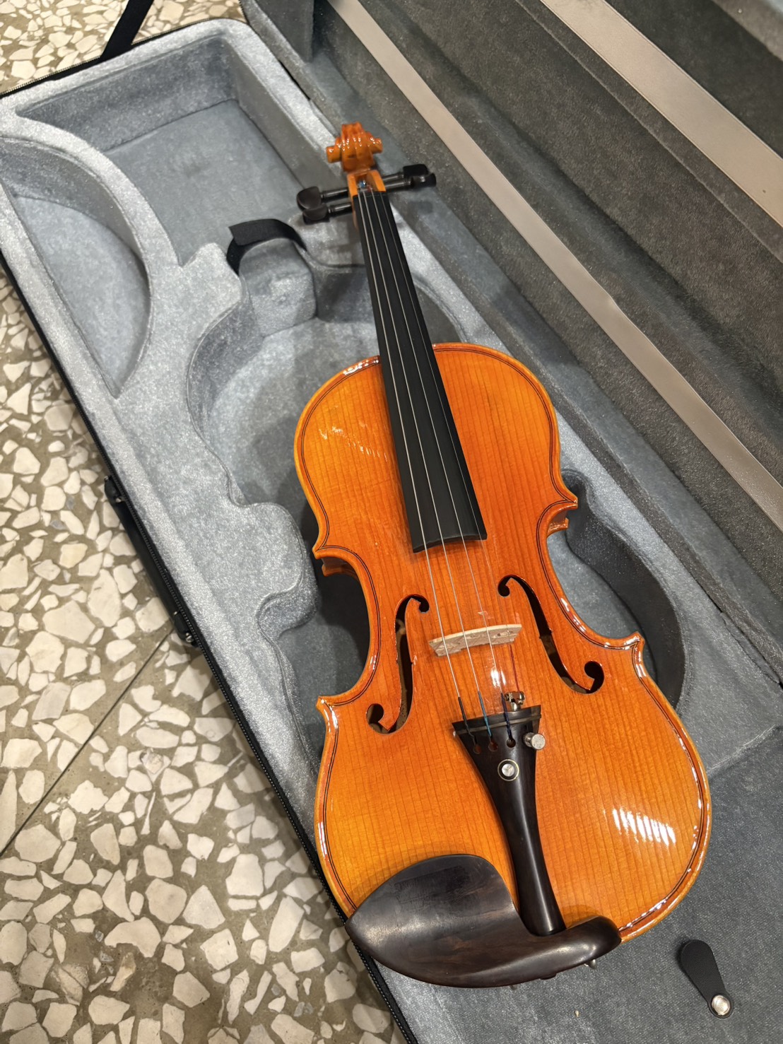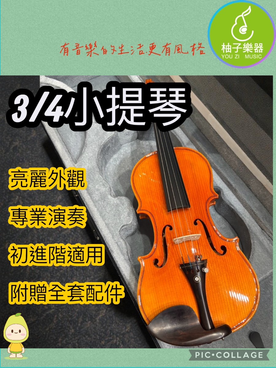 這把 3/4 中級小提琴以亮面琥珀漆呈現乾淨明亮的外觀,面板木紋細緻耐看,適合正在穩定練習、準備往更好音色與更順手感邁進的學生族群。四微調尾枕讓校音更友善,日常維持音準更省心;加上硬盒收納保護到位,外出上課也更安心。到柚子樂器挑選時,也能依需求協助檢查與建議設定,讓你一拿到就更好拉🎻😊