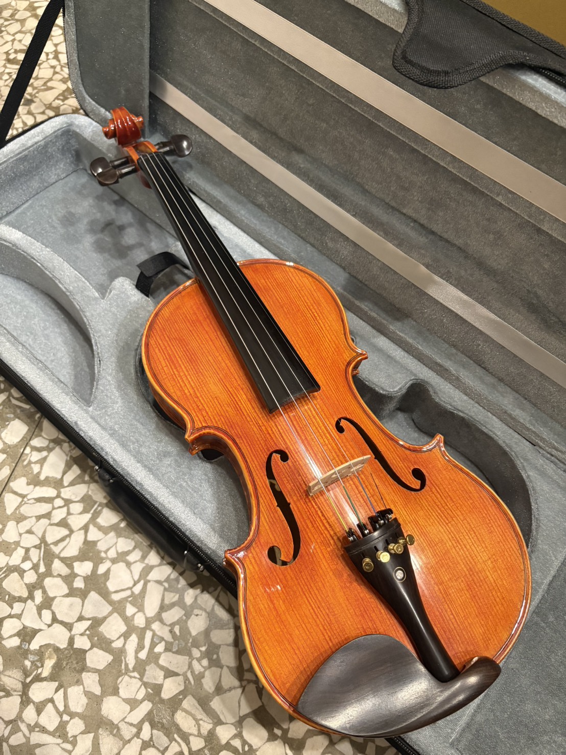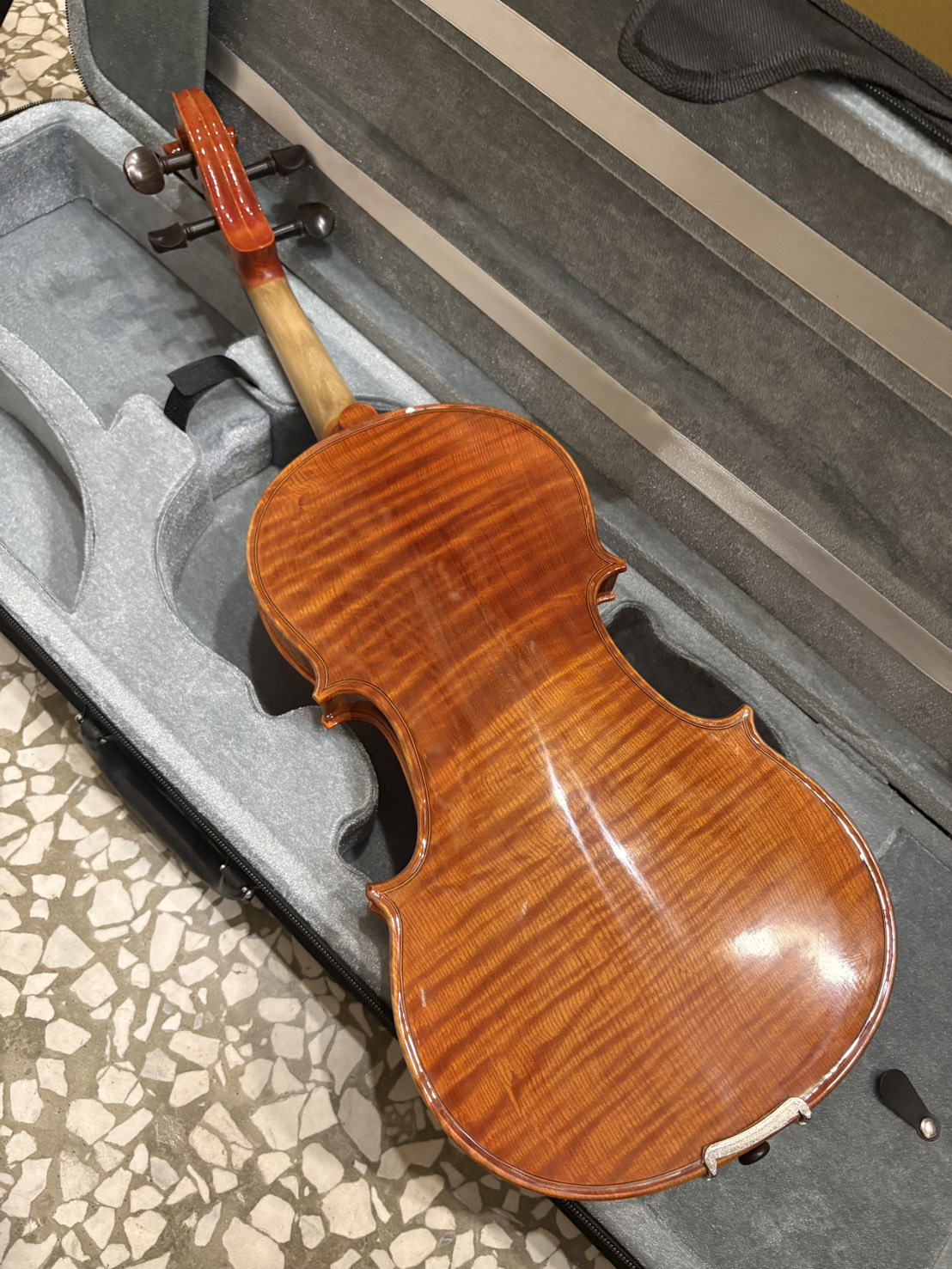 這款亮面虎紋小提琴套組主打外觀質感與新手友善度:琥珀亮面烤漆搭配虎紋背板,視覺層次很加分;琴橋採用 AUBERT(Made in France)配置,發聲更集中,搭配 4 微調尾絃板讓調音更直覺好上手,並附硬盒方便上課攜帶與收納防護。想挑一把好看、好調、好照顧的入門練習琴,來柚子樂器看看最安心🎻✨🍋