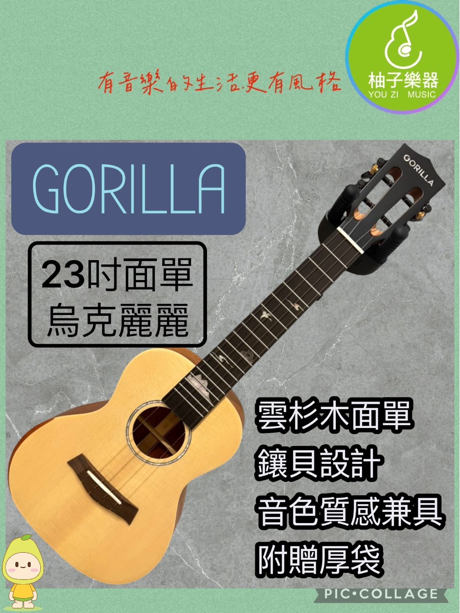 23吋 GORILLA GCU-Y01R 雲杉面單板烏克麗麗 (主商品) 🎸