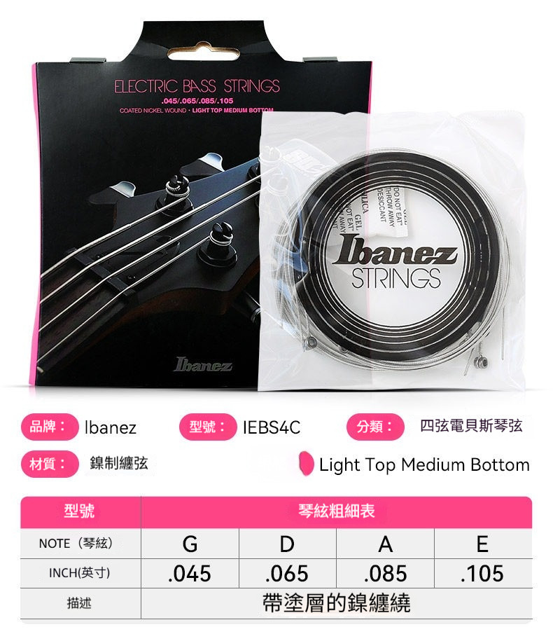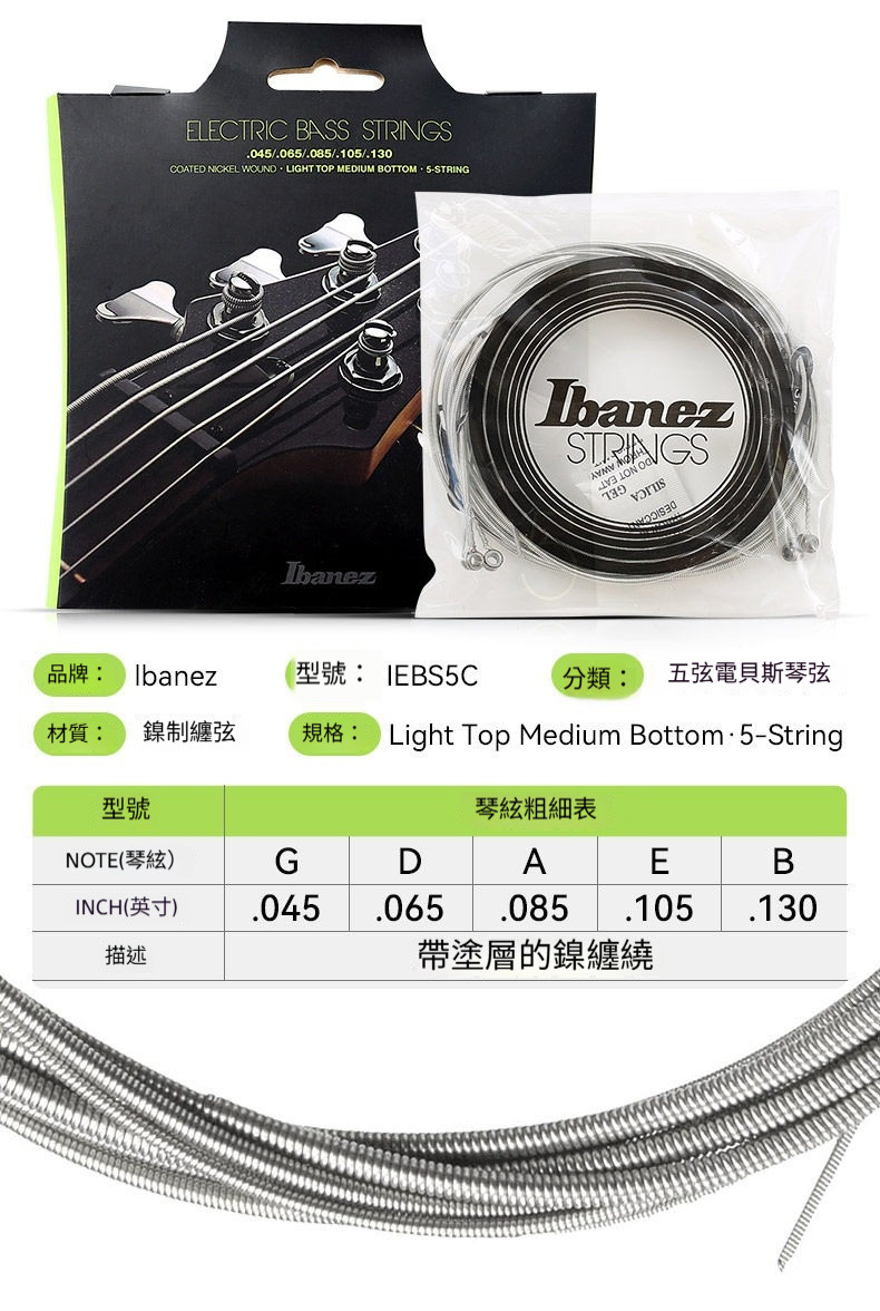Ibanez 電貝斯弦/IEBS4C/IEBS5C/Bass Strings/4弦貝斯弦/5弦貝斯弦