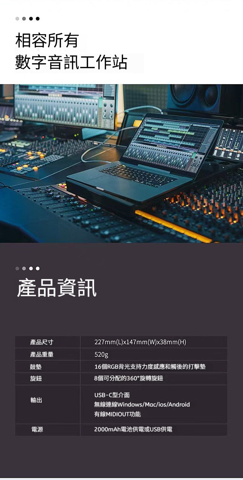 支援力度感應與多色背光顯示,適合鼓組編程、取樣觸發與節奏操作,也是柚子樂器在入門 MIDI 控制器中常推薦的實用配置。