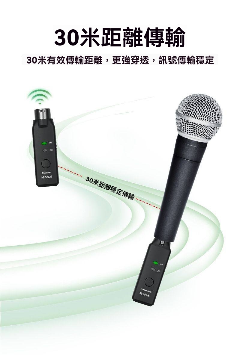 可將有線 XLR 麥克風轉為無線使用,舞台演出或錄音時活動更自由。