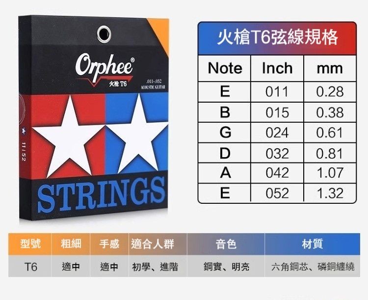Orphee 奧路菲 木吉他弦 電吉他弦 G5 G6 T6 P40|柚子樂器