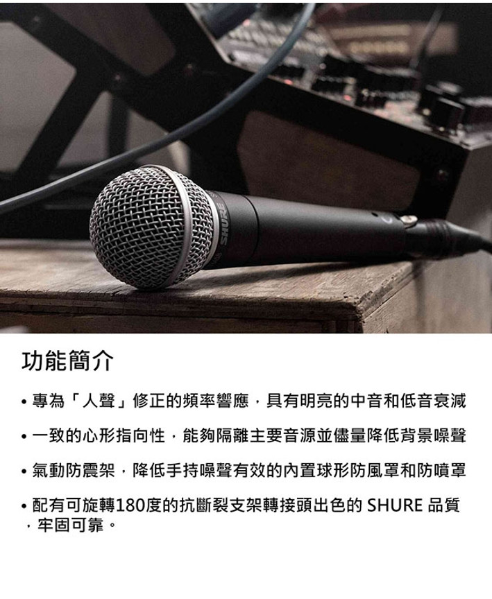 Shure 舒爾 SM58-LCE 傳奇人聲麥克風特色