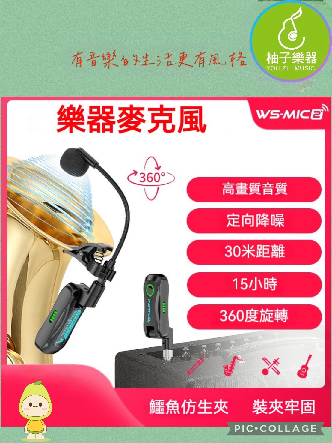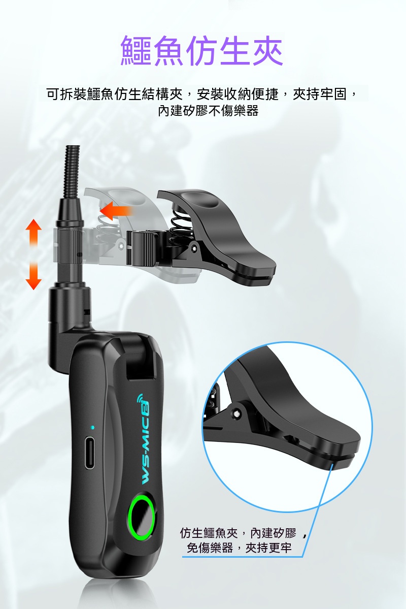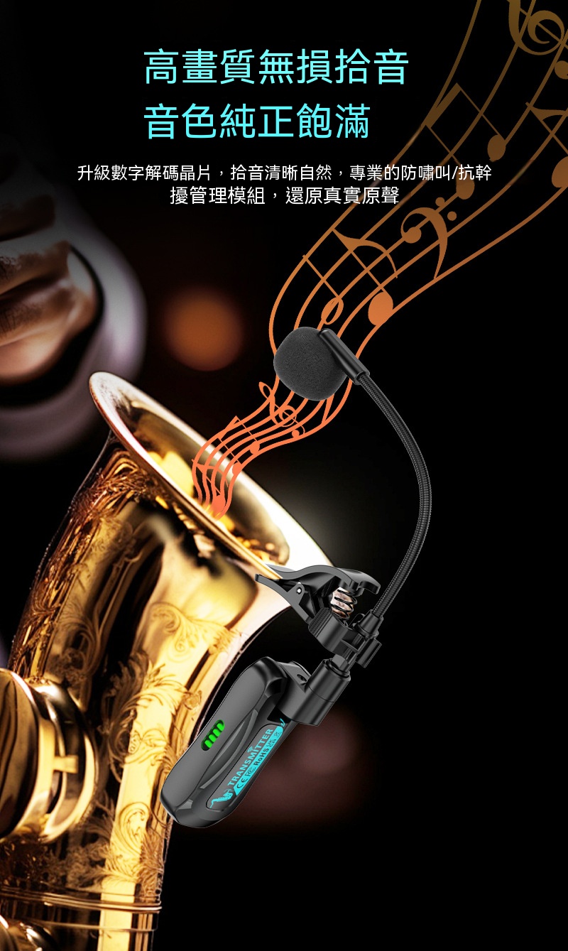 WS-MIC2 樂器麥克風|薩克斯風/小號專業收音|30米穩定傳輸 15小時續航|柚子樂器