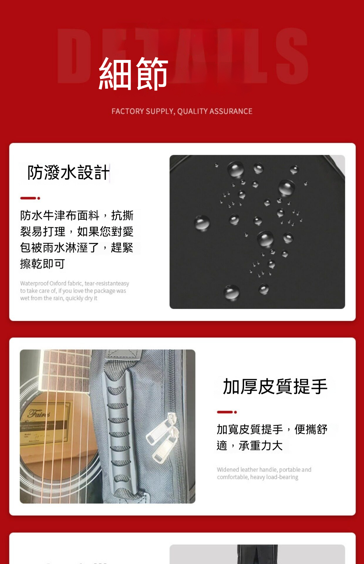 防水耐磨材質 🌧️:高品質抗磨布料,保護吉他不受潮、不刮傷。